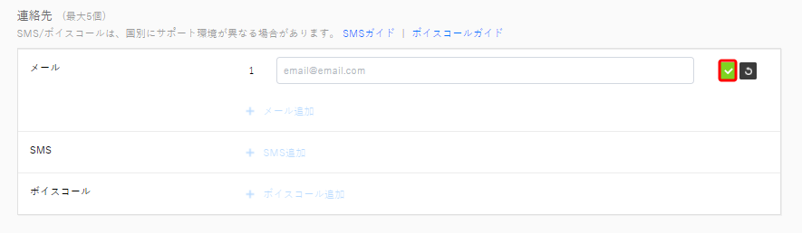 個人情報に追加した連絡先情報が自動で表示されます。インシデント通知を受信する連絡先を選択した後、チェックボタンをクリックします。