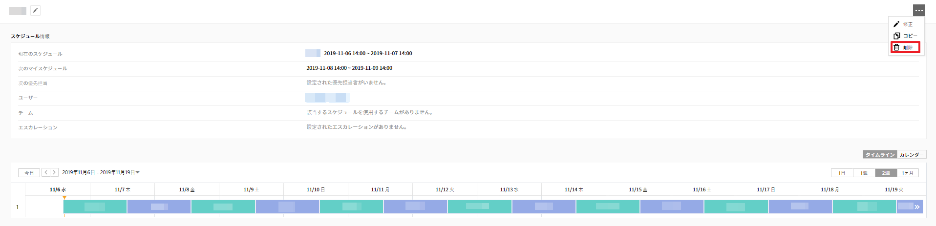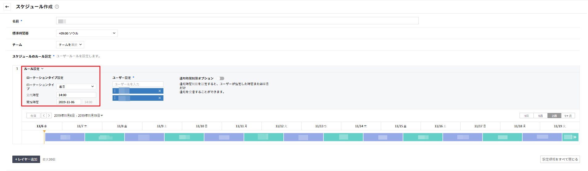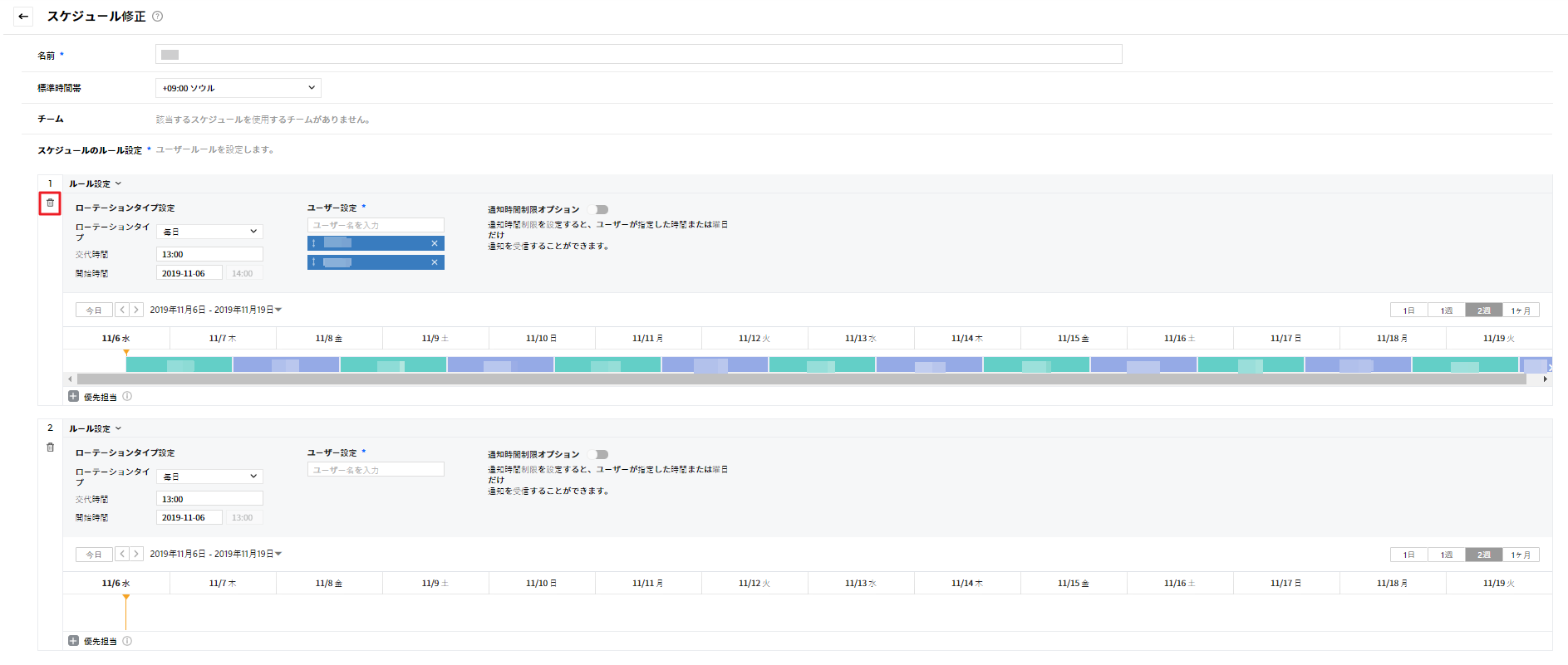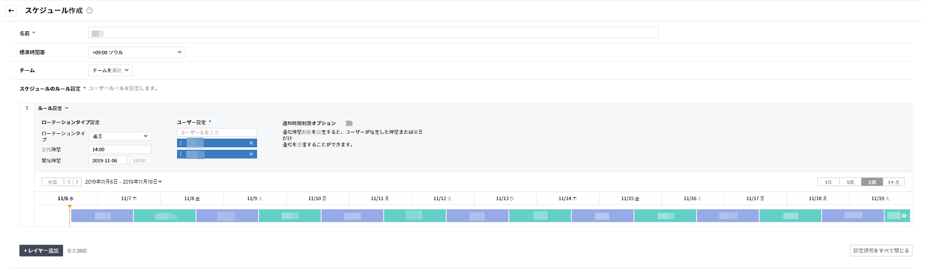 応答者の入力フィールドにエスカレーションを処理する応答者を入力します。応答者を設定するとき、スケジュールとユーザーに区分でき、複数個のスケジュールとユーザー選択が可能です。また、スケジュールとユーザーを同時に選択することもできます。
