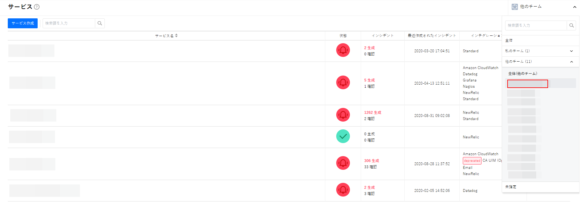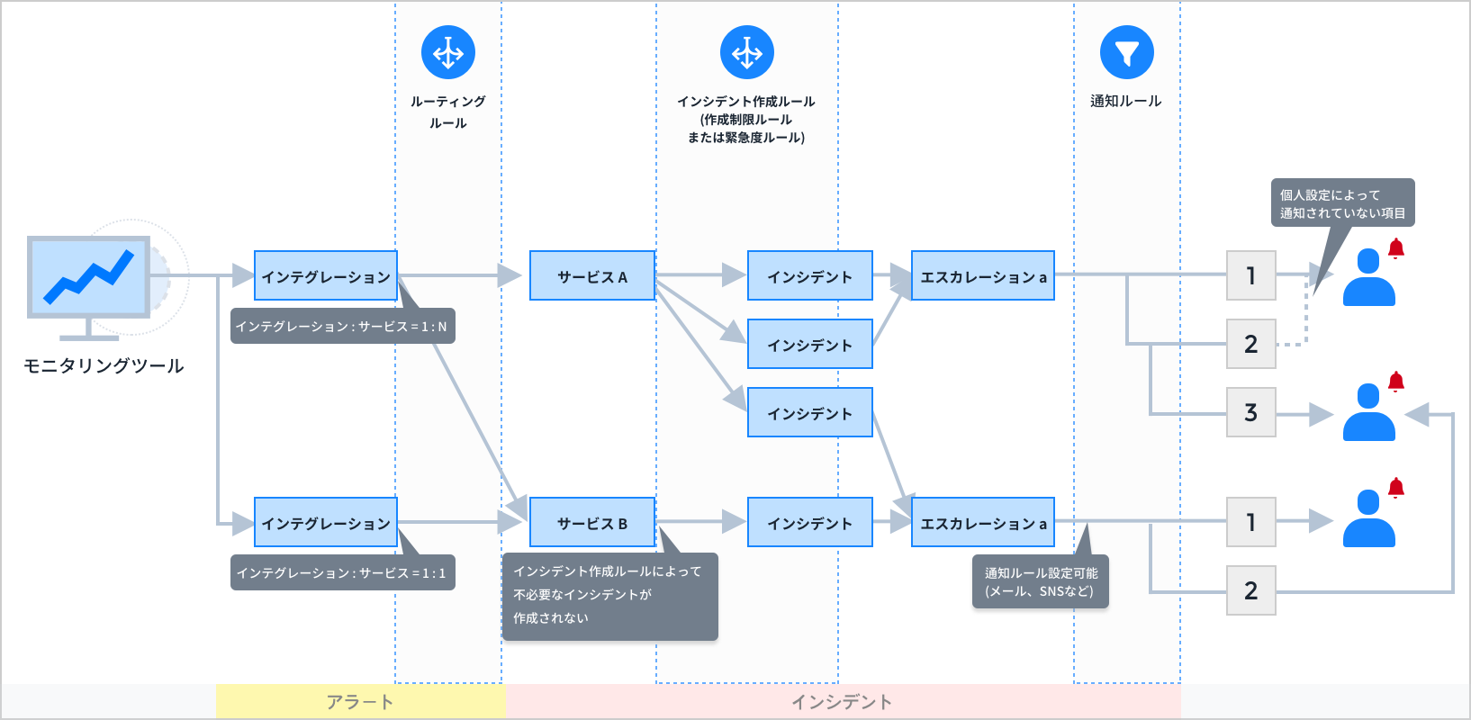 - サービス:インテグレーションで発生するインシデントを管理するための単位で、実際にユーザーが管理するサービスやアプリケーションになることができ、その他にもユーザーの利便性によって自由に活用できます。
