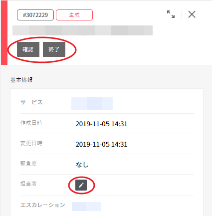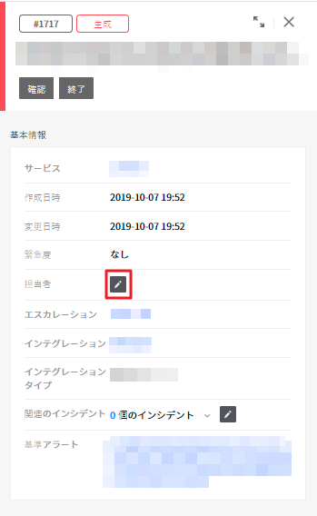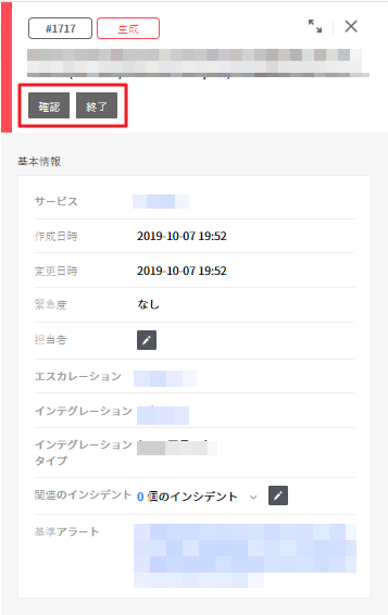 メールの場合、SMSとは異なりインシデント詳細画面でインシデント状態(確認/終了)及び担当者を手動で変更すると通知を受信できます。
