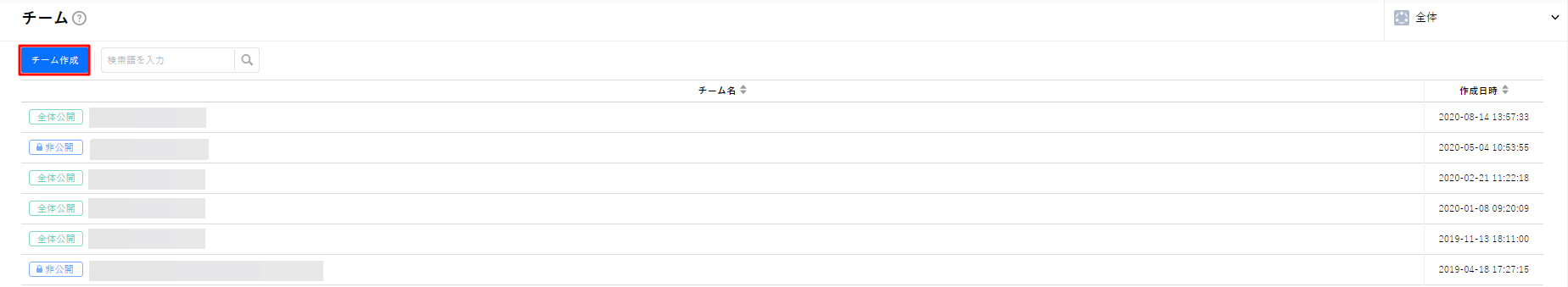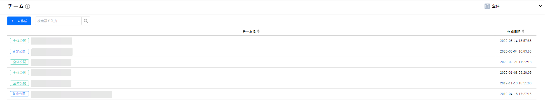 | チーム | ユーザーが所属している、または作成したチームリストが表示されます。 |