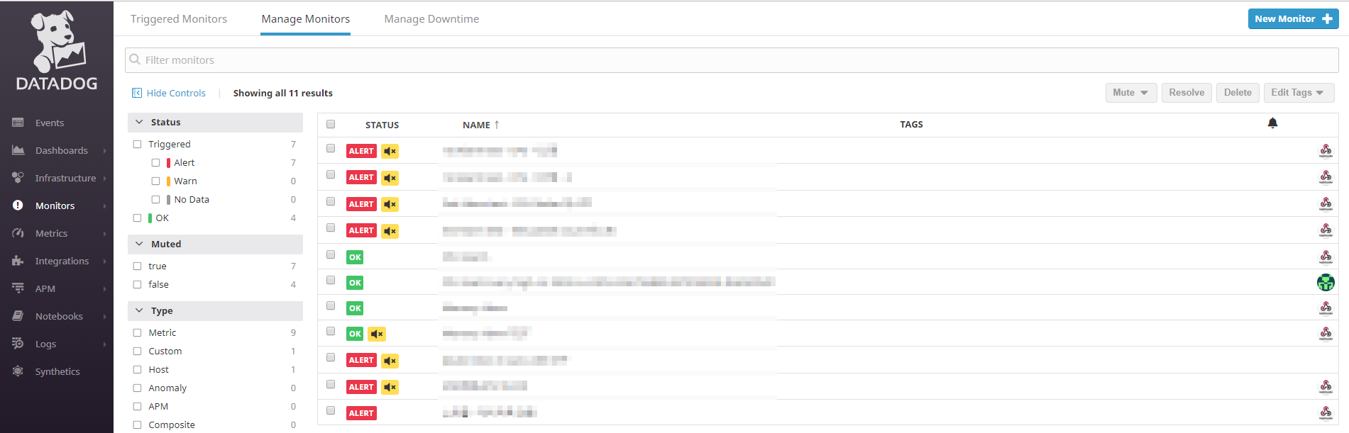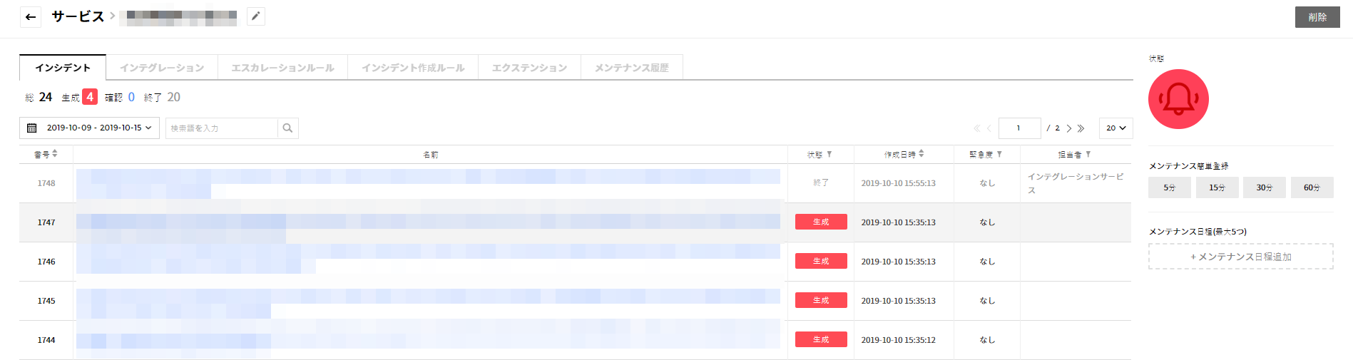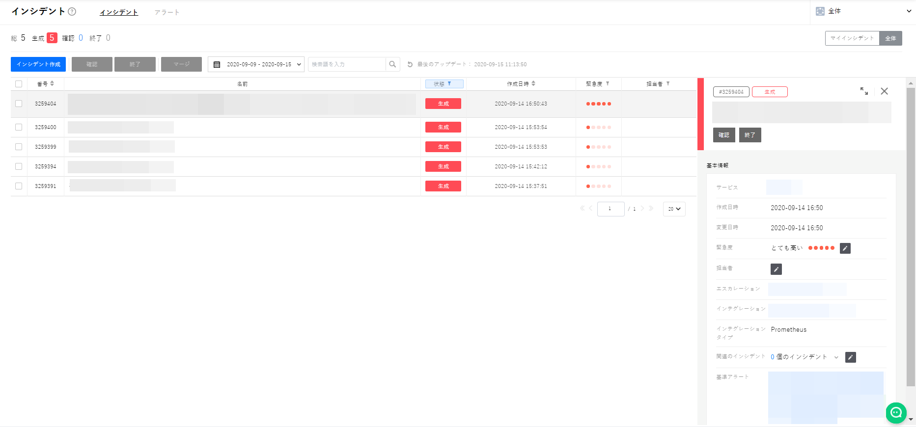 - インシデント:アラート収集時にインシデントポリシーによって発行されたチケットの状態を管理します。