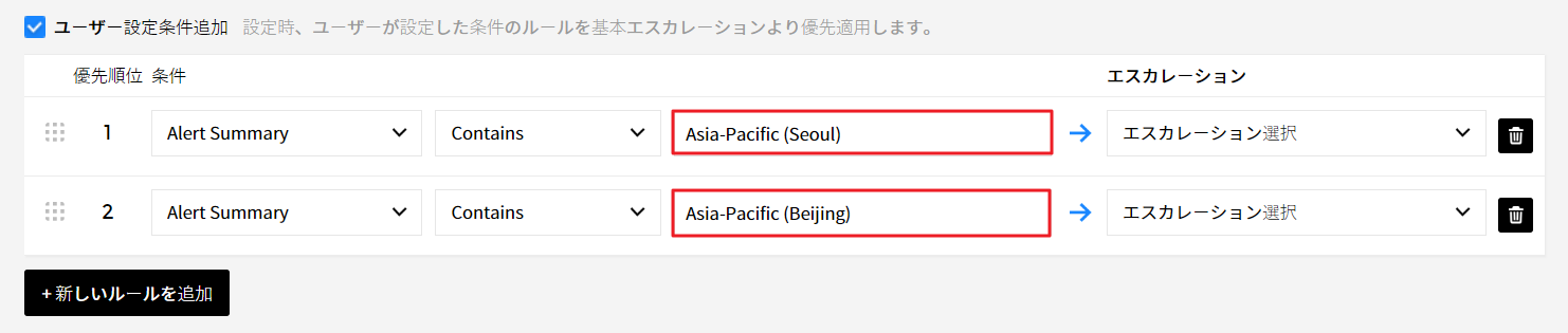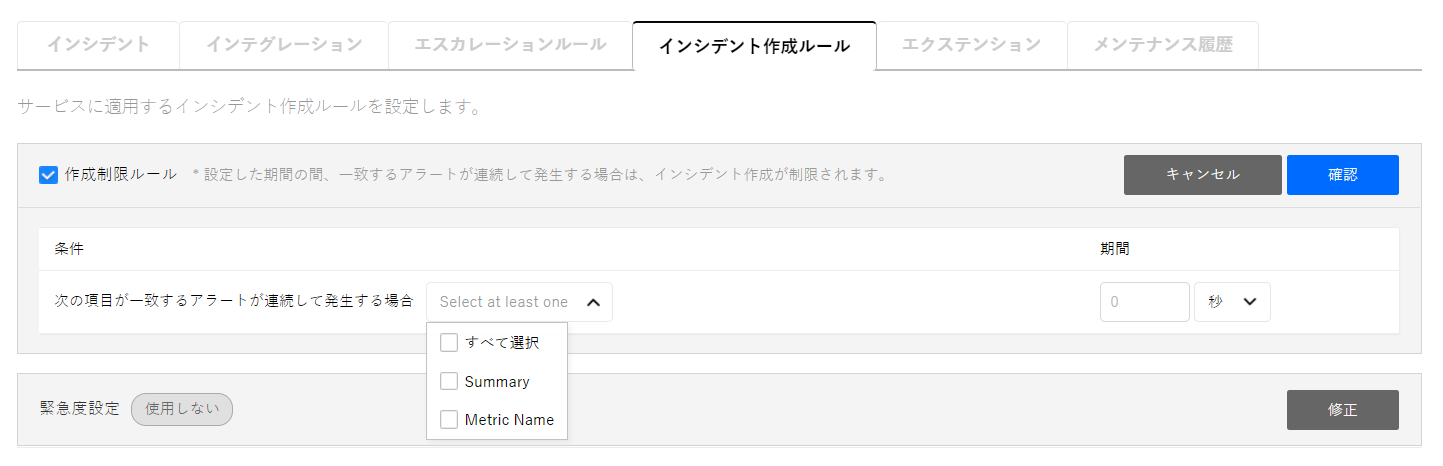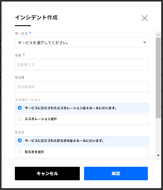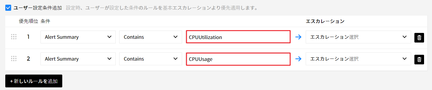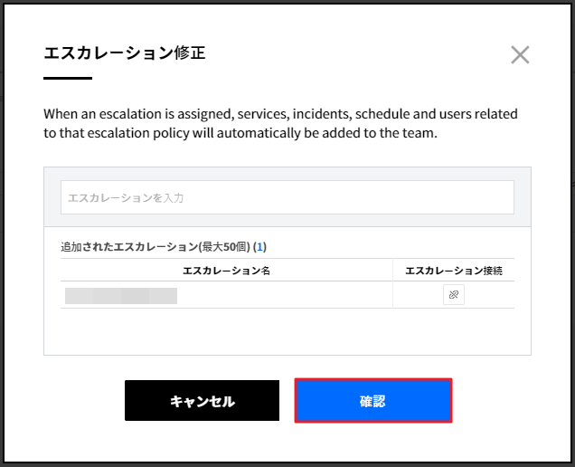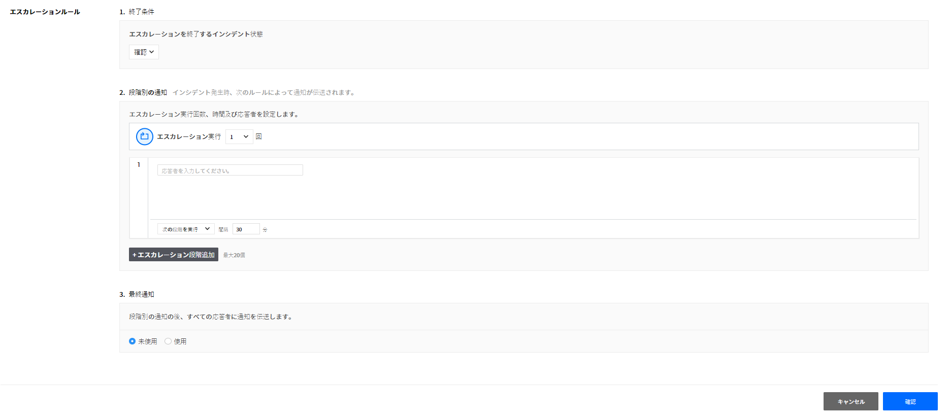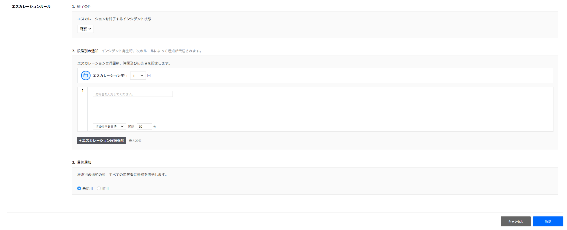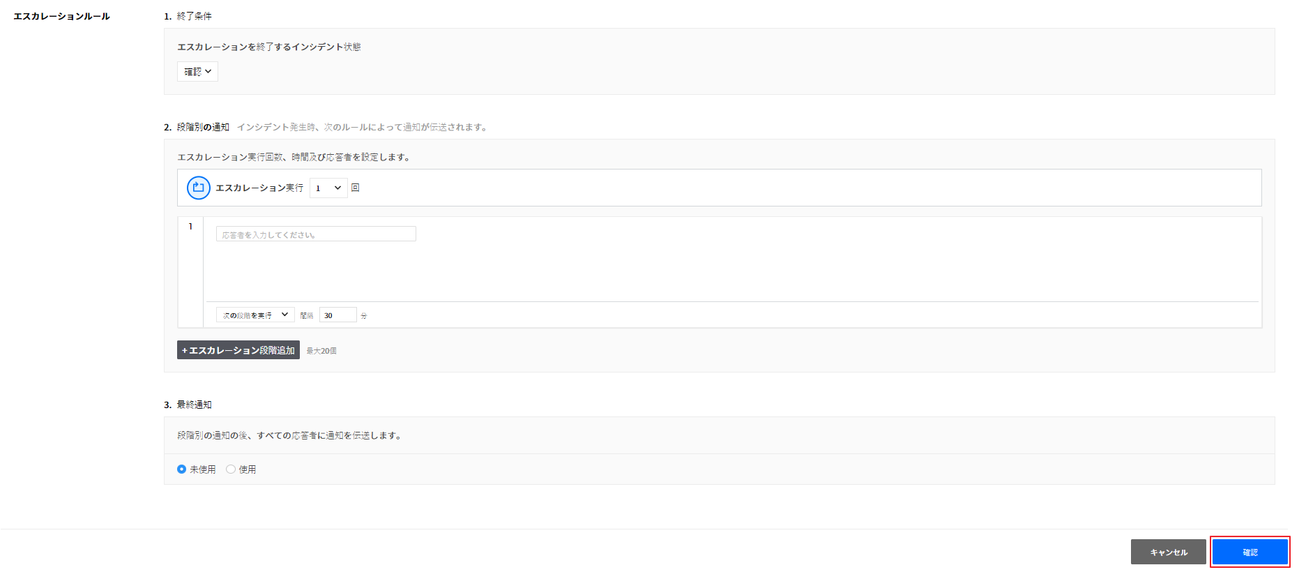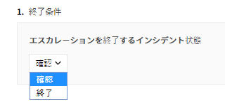 エスカレーションを終了するインシデントの状態を設定でき、確認か終了を選択します。