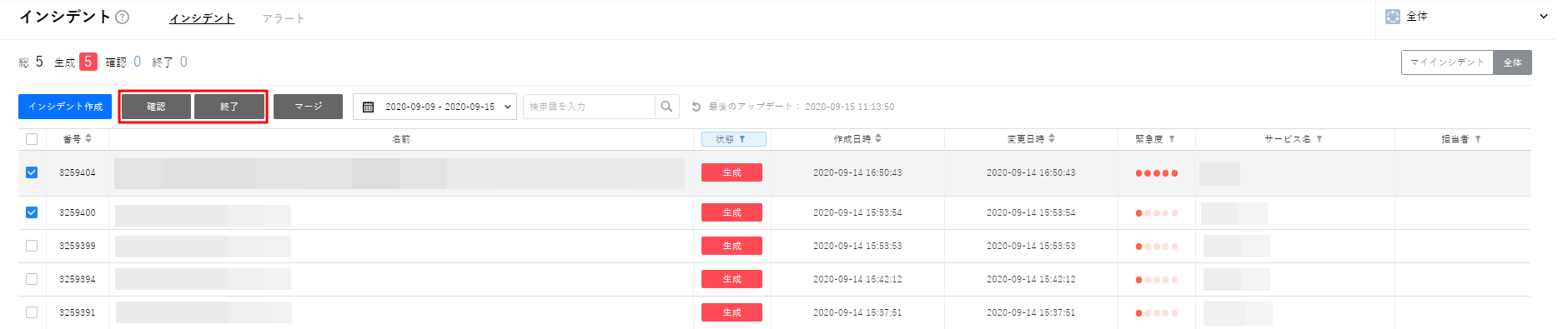 | 4 | インシデント状態を「確認」に変更する番号(1で終わる) | O | O | X |