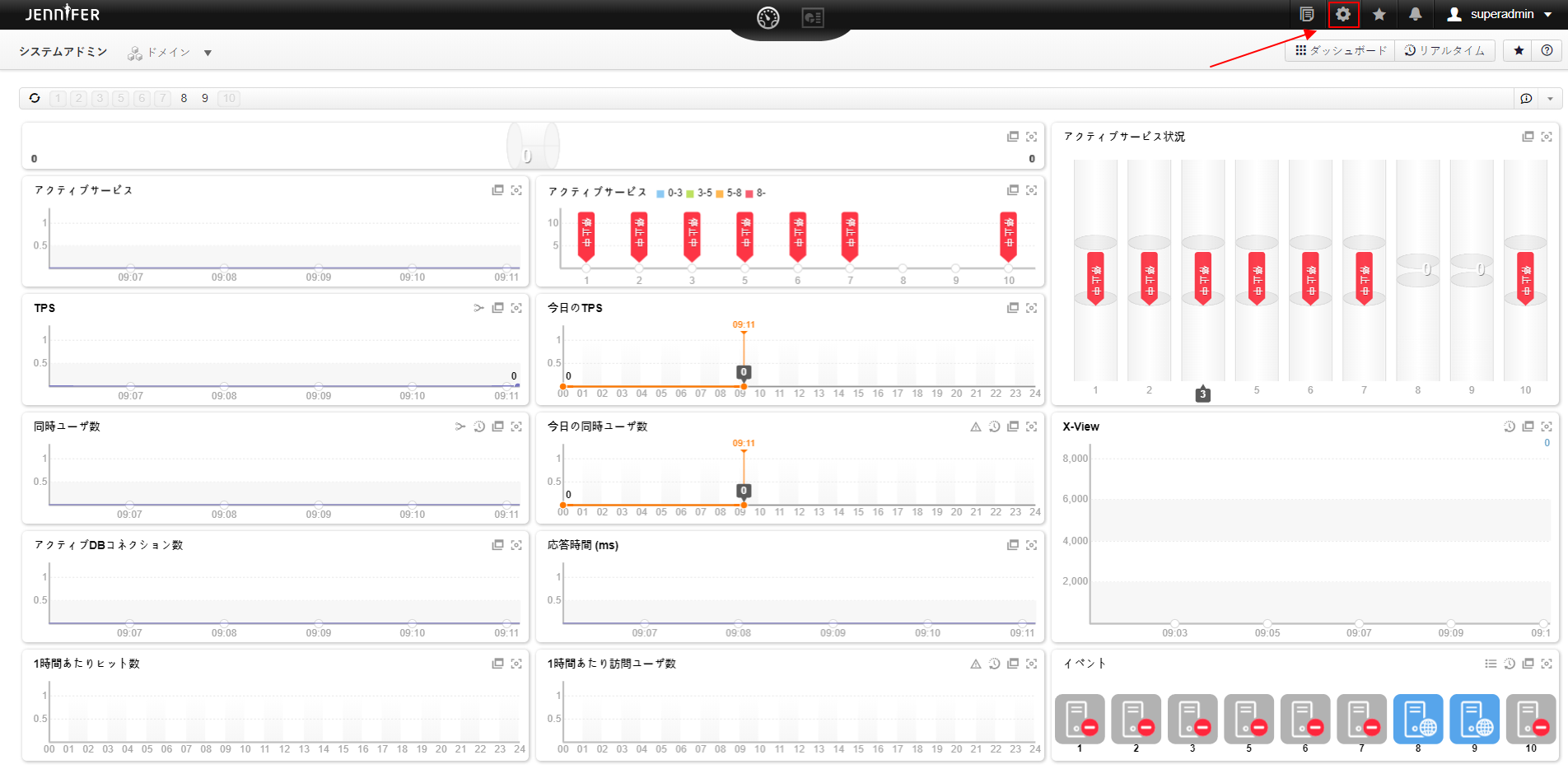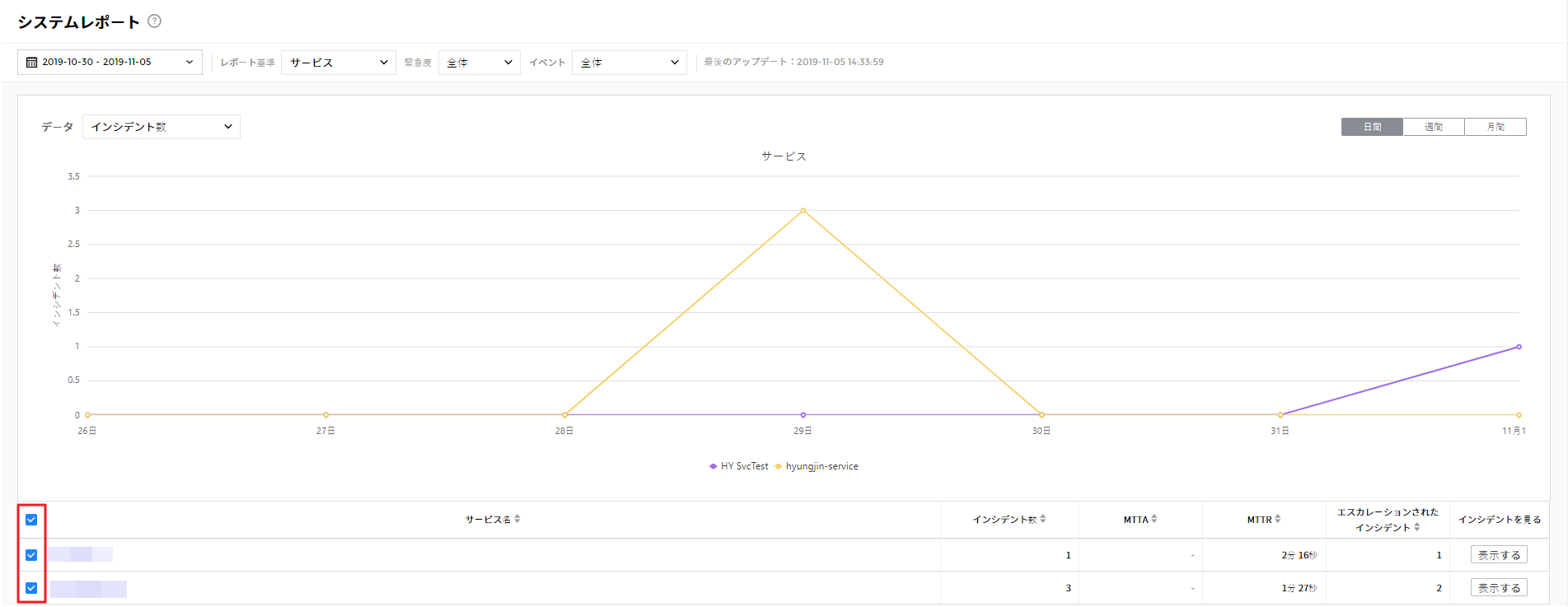 各サービスの状態を確認でき、サービスで発生したアラームの障害現況と履歴を管理することができます。