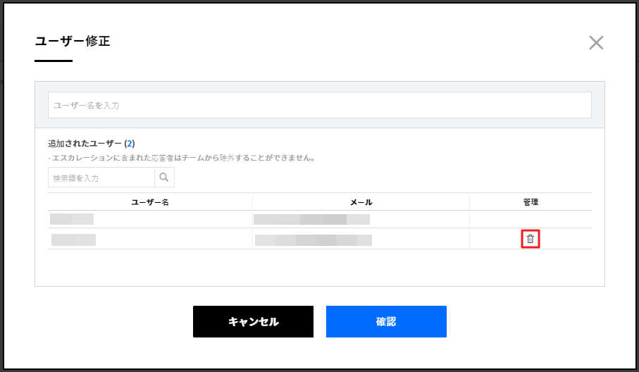 | エスカレーション | ユーザーが所属しているか作成したエスカレーションリストが表示されます。 |