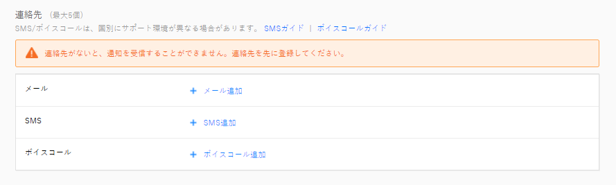 | インシデント通知を受信する連絡方法を設定します。 | |