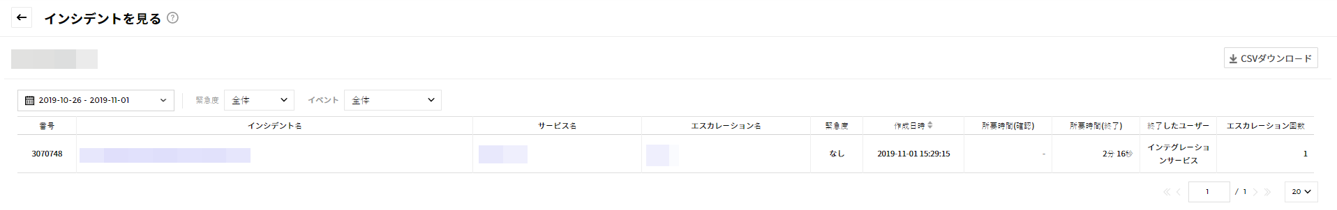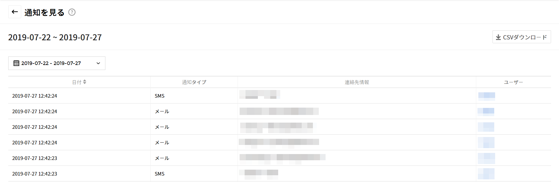 通知詳細画面では、選択した期間の通知リストを確認して、画面に表示されるデータをCSVファイルでダウンロードできます。