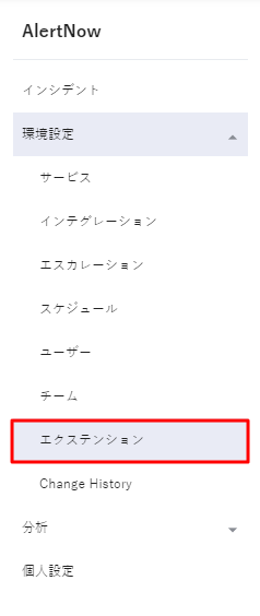 - エクステンション:AlertNow内で作成された特定データを、外部ツールやサービスに送信できるようにする機能です。