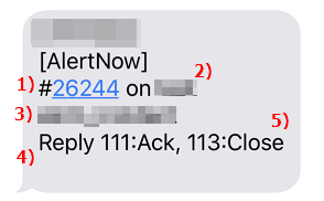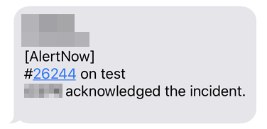受信したメッセージで「確認」を表示する番号を押して返信する場合、インシデントを確認したというメッセージを次の通り受信します。