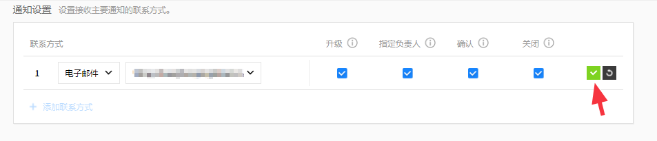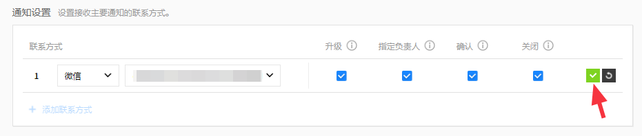 ① 将联系方式选为微信后,选择接收通知的状态后点击后面的勾选按钮。