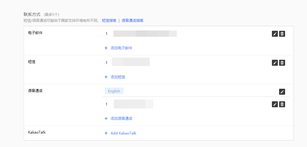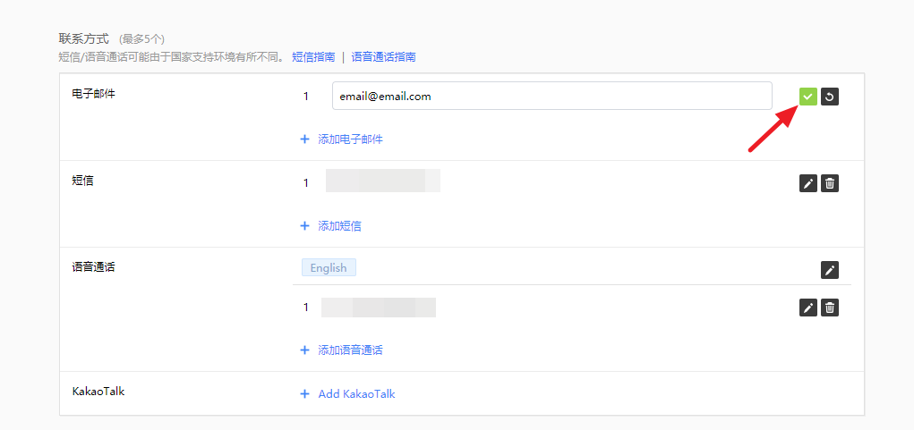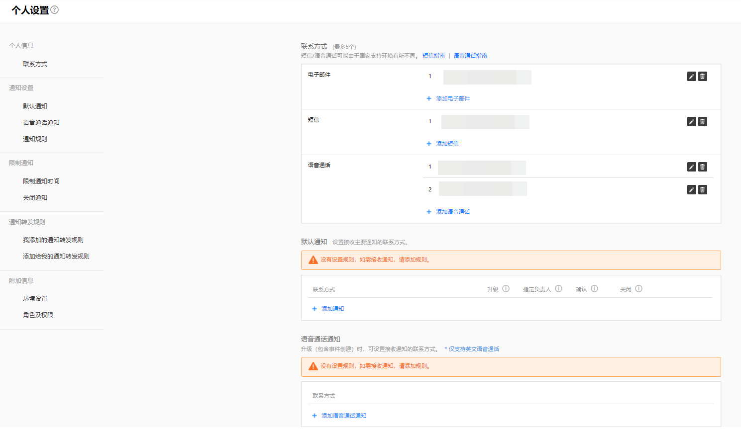 ※ 有关添加联系方式和设置通知的更多内容,请参阅个人设置。