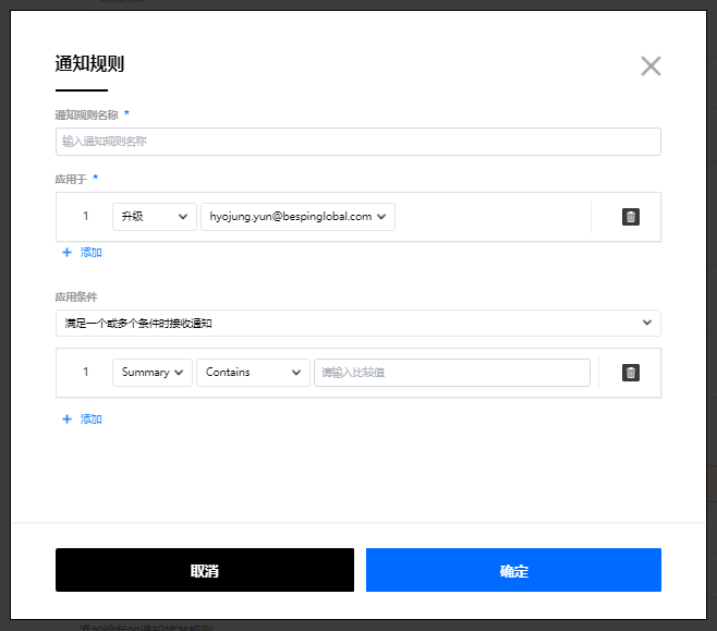 ② 输入通知规则名称并选择应用对象。点击[+添加]按钮可添加更多应用对象。