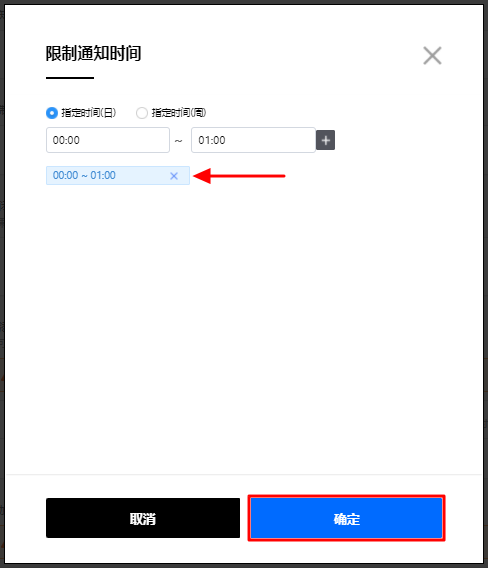 ② 选择每周或者每日指定时间后点击[添加]按钮。例如,选择每日后选择了09:0012:00,那么每天的这个时间段您将不会收到通知。如果您选择了每周,然后选择了周一的09:0012:00,那么每周一的09:00到12:00您将不会收到通知。