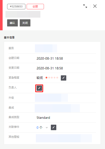 ① 点击要更改负责人的事件,则会显示该事件的详情页面。点击负责人最右侧的> 按钮即可搜索要变更的负责人。