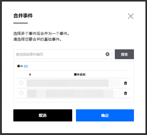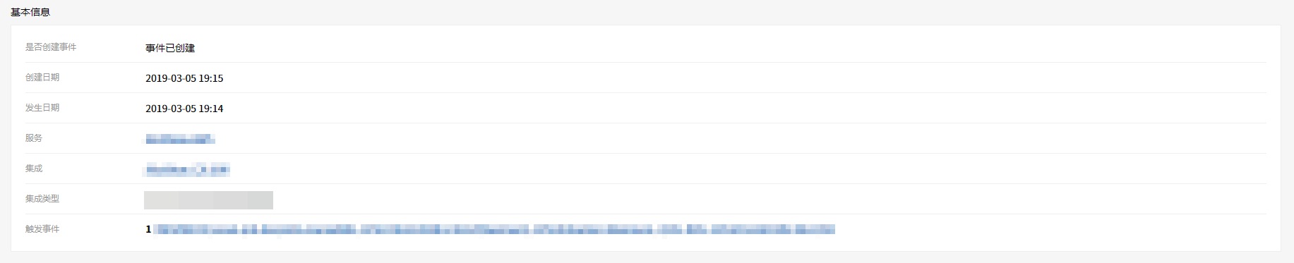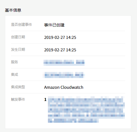 ① 在创建或确认选项卡中选择事件后,即可跳转到相应事件的详情页面。