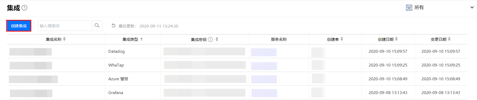 拥有服务责任权限的用户,可以进行创建、修改、删除、查询操作。但是仅可以查看集成列表和用户列表。