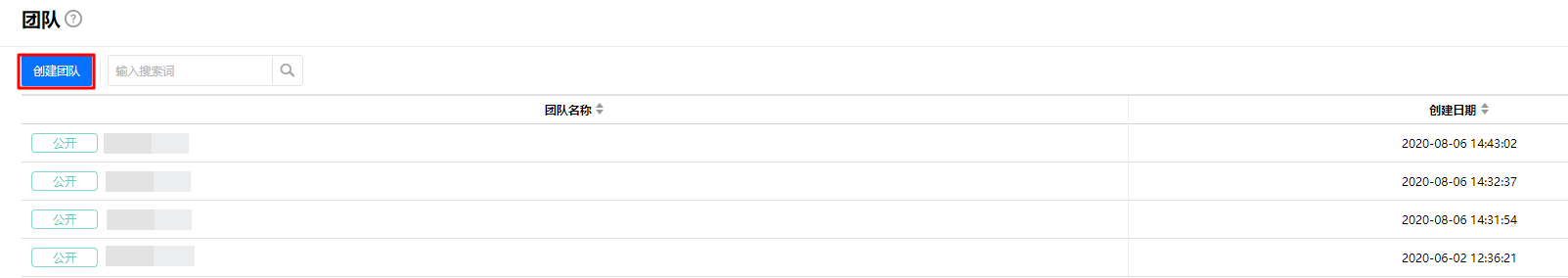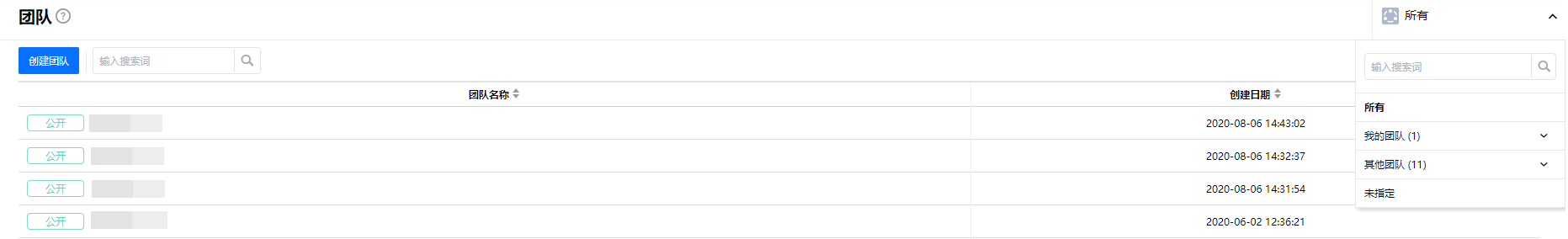 | 团队 | 显示用户所属或创建的团队列表。 |
