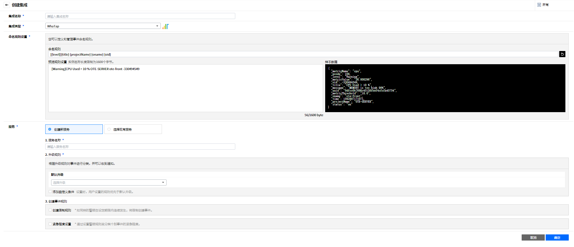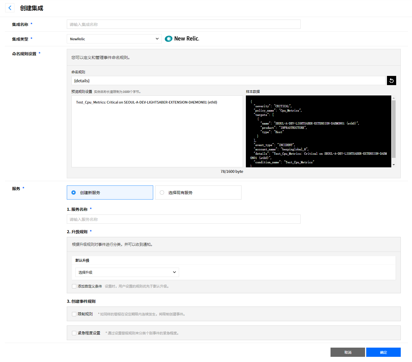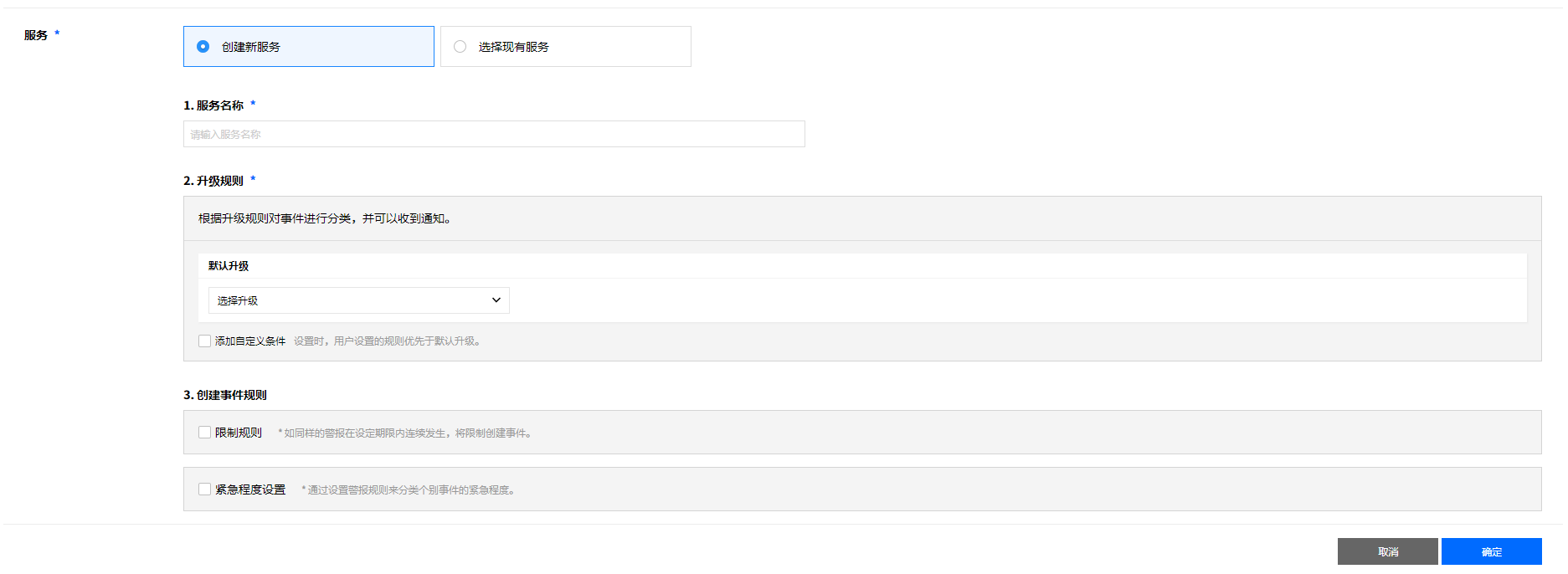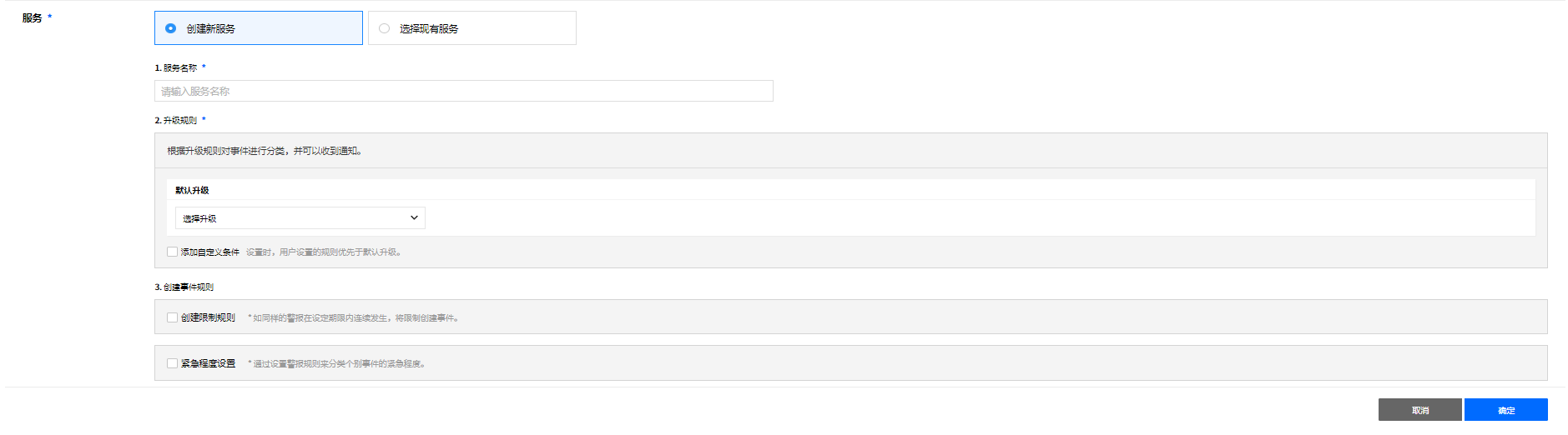 - 服务:作为管理集成中发生的事件的单位,可以是用户实际管理的服务或应用,可根据用户需要灵活使用。