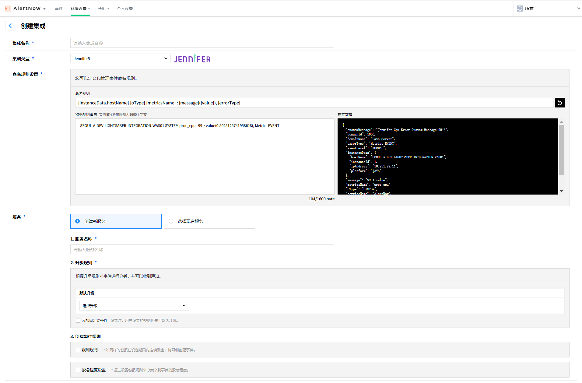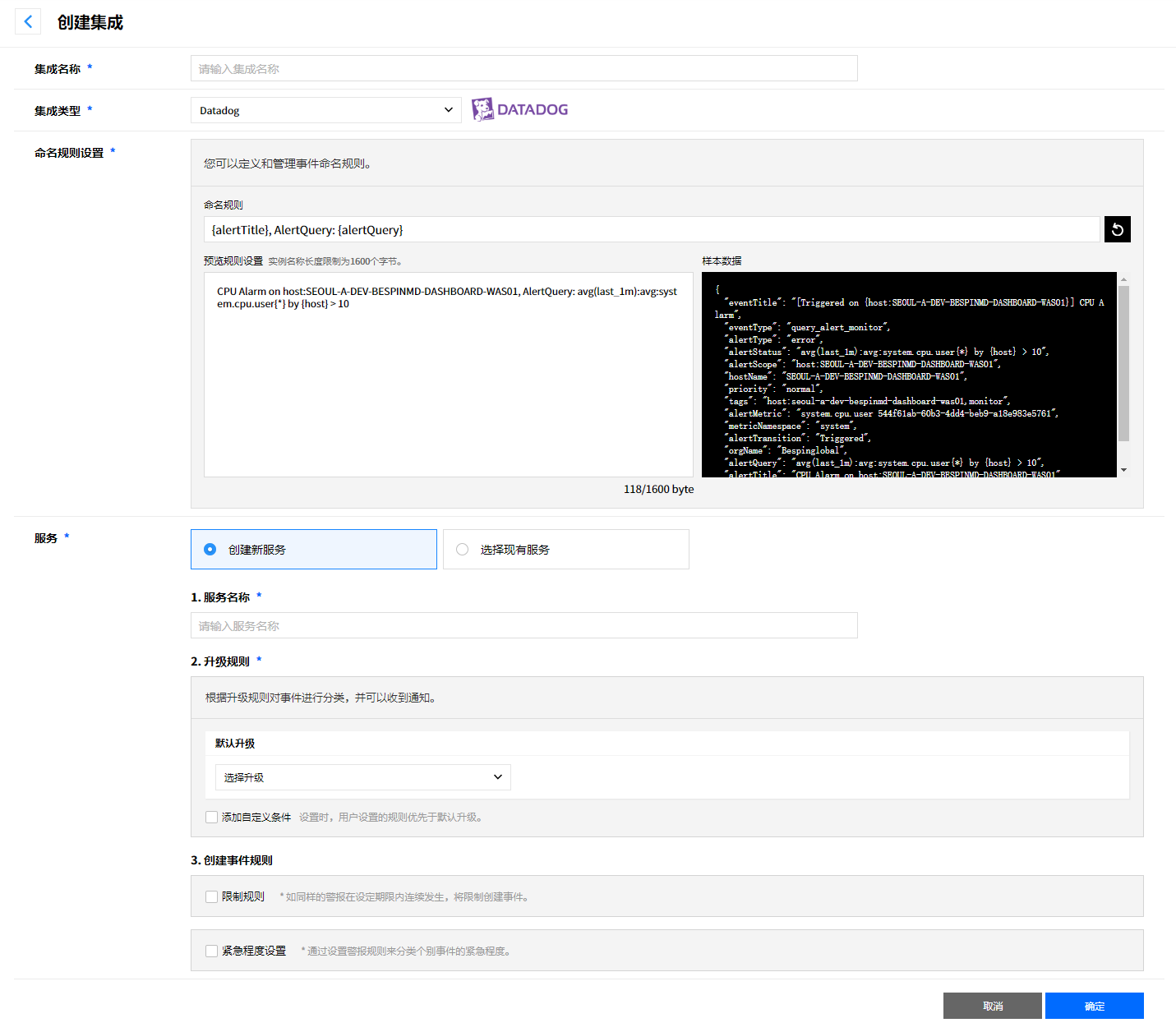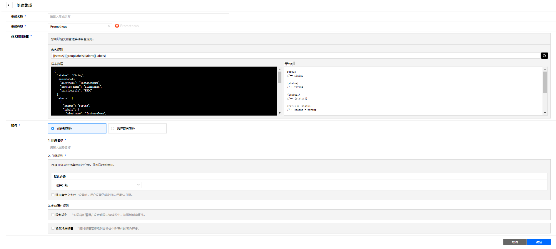 - 服务:作为管理集成中发生的事件的单位,可以是用户实际管理的服务或应用,可根据用户需要灵活使用。