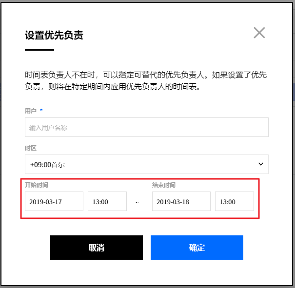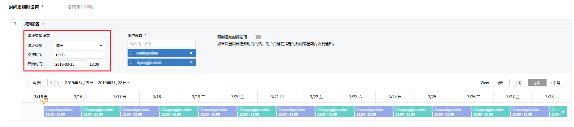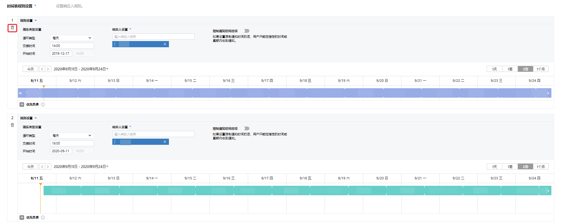 ② 选择接收通知的响应人,然后设置开始和结束时间。