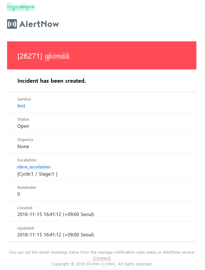 | 事件发生时(单向) | 韩文 | 얼럿나우 알림입니다. {service name}에 인시던트가 생성되었습니다. 인시던트 번호는 {incident number}입니다. |
