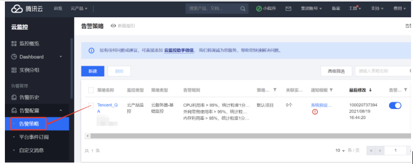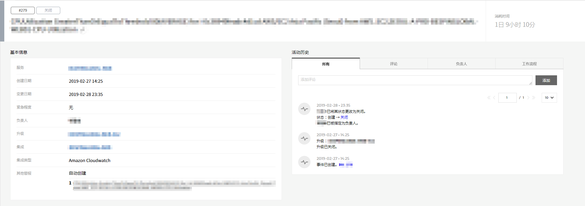 - 完成设置后,通过关联到集成的信息会创建警报和事件,您可以收到创建事件和更改状态的通知并可以修改事件。