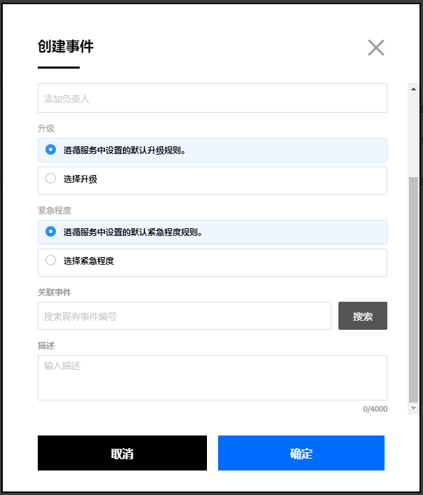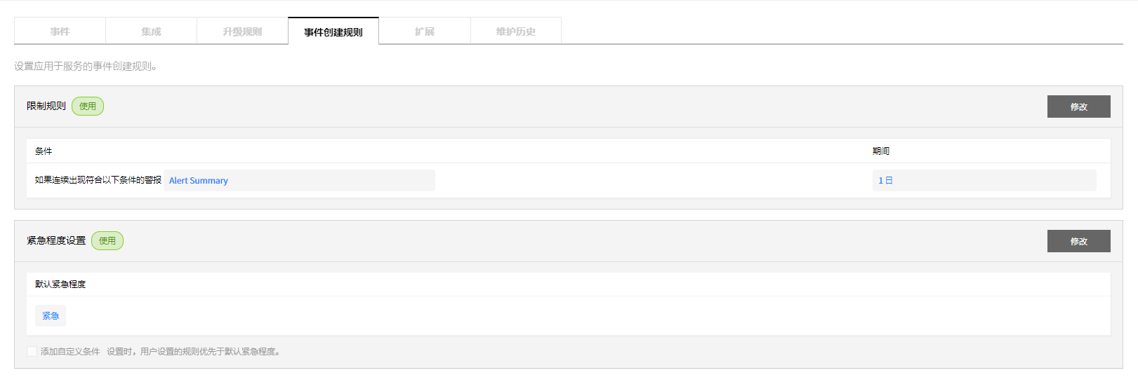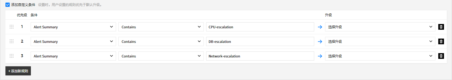 - 升级:设置发生事件时各阶段的负责人、要进行的操作及限制时间。