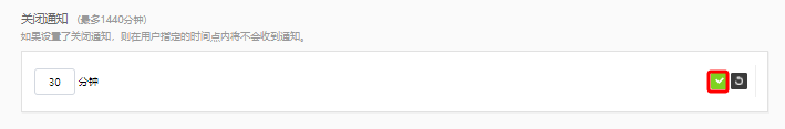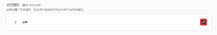 ① 关闭通知时间默认设置为0。点击[修改]按钮后输入所需的时间。关闭通知的时间最多可设置到1440分钟。