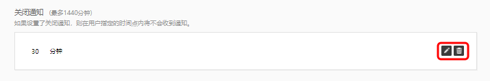 ③ 您可以使用[修改]按钮修改设置的时间,或使用[删除]按钮删除设置的通知关闭时间。