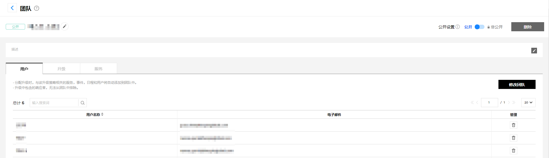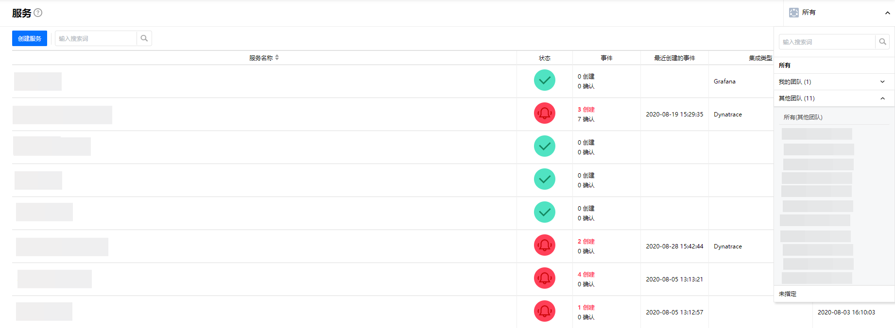 - 团队:以组为单位管理升级、用户、服务等与事件相关联的信息。