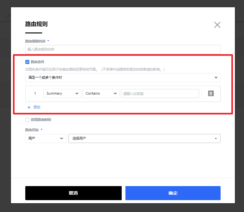 ③ 设置应用条件。点击[+添加]按钮可添加更多应用条件。