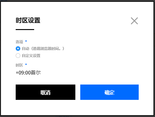 | 时区 | 可按需更改时区,默认将时区设置为和浏览器一致的时区。 |