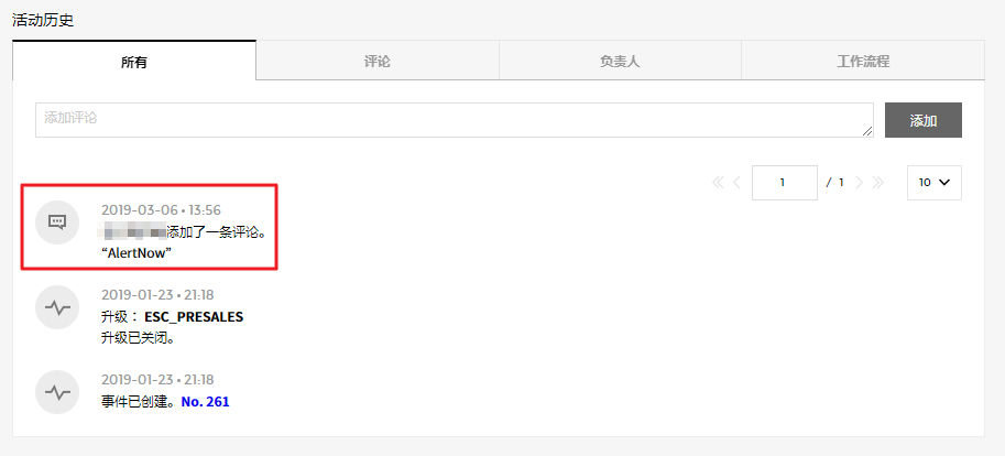 ⑥ 当事件负责人被更改时,您将会如下收到事件负责人已被更改的消息。更改后负责人信息将会同步到Assignee。